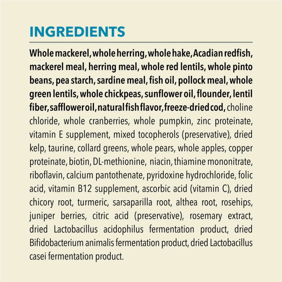 Bring home the quality nutrition your cat needs to thrive with ACANA Highest Protein* Wild Atlantic Saltwater Fish with Freeze-Dried Liver Dry Cat Food. This high protein cat food features nutrient-dense, wild-caught whole mackerel, herring and hake. Rich with the highest level of animal protein*, ACANA cat food kibble satisfies your cat completely with its fish ingredients and flavor. ACANA cat food is 75 percent** animal ingredients. ACANA never includes artificial flavors, colors or preservatives and never adds soy, corn, tapioca or wheat in their kitchen to ensure your furry family member gets only the best. Even better, balanced omega-3 and omega-6 fatty acids help support healthy skin and a shiny coat, and fiber and a probiotic blend help support cat digestive health. This grain free*** dry cat food also includes taurine, EPA and DHA — essential nutrients your cat needs to help maintain eye and heart health. Choose ACANA dry cat food to give your companion the nutritional foundation they need to live a happy, healthy life. *Compared to the top 5 leading dry cat food recipes **Approximate and derived from the unprocessed state of the ingredients ***No added grain ingredients. Produced in a facility that also processes grains.